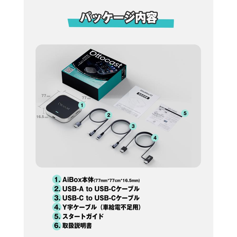 - 有線CarPlay/Android Autoをワイヤレス化。乗車後すぐ自動接続